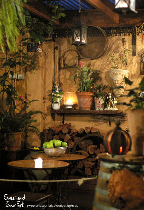 Being in Garden Tuscany was like stepping into a fairy tale. It was an indoor garden that spoke of bygone civilisations with its brick floors and rough-hewn stone walls. Piles of firewood were stacked in the corners, and the walls were adorned with carvings and oil lamps. There was even a huge wood fire oven in the corner that was actually used to make pizza.